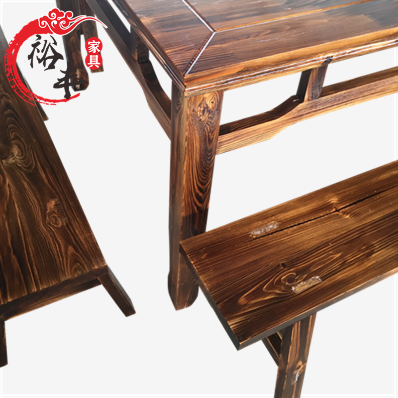 Antique solid wood barbecue table and chair electromagnetic stove liquefied gas cook three string spicy hot night night