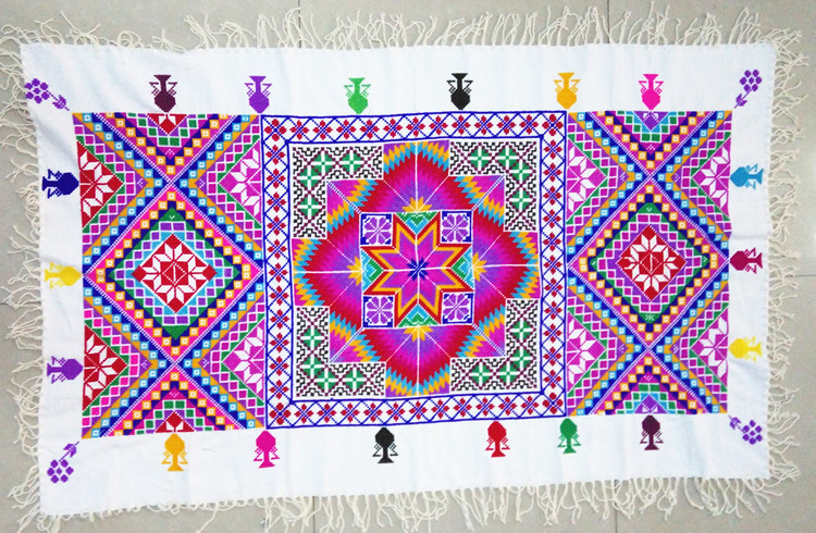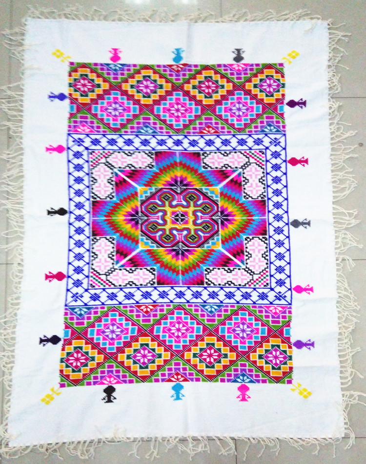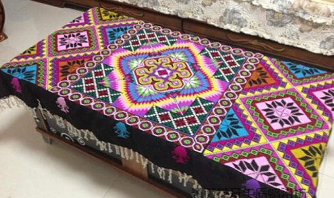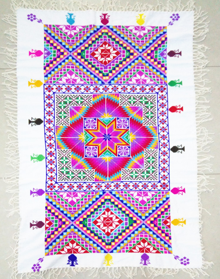 Ethnic style Zhuang hand-embroidered tablecloth Zhuangjin cross stitch wall hanging tablecloth sand release long tablecloth coffee table cloth