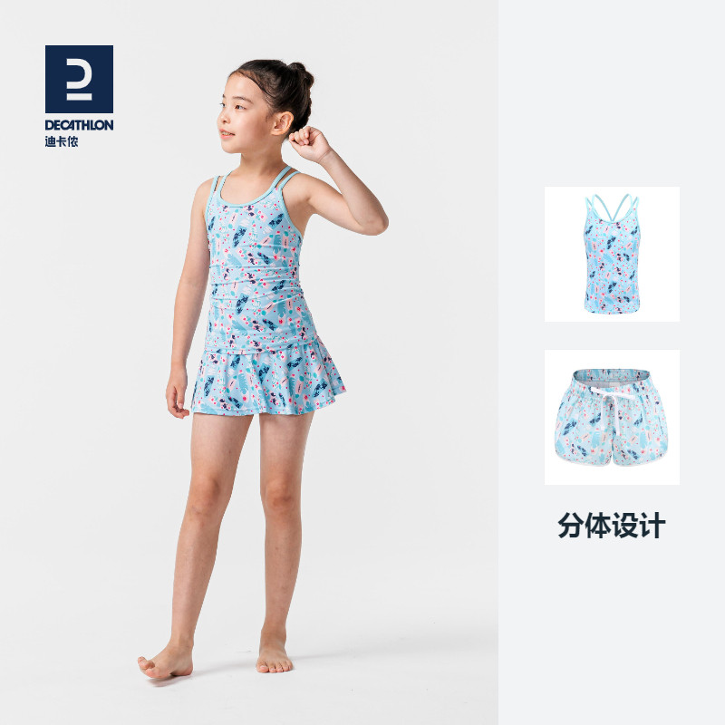 Decathlon children's swimsuit one-piece swimsuit skirt girls split swimsuit bikini baby middle and large child KIDK