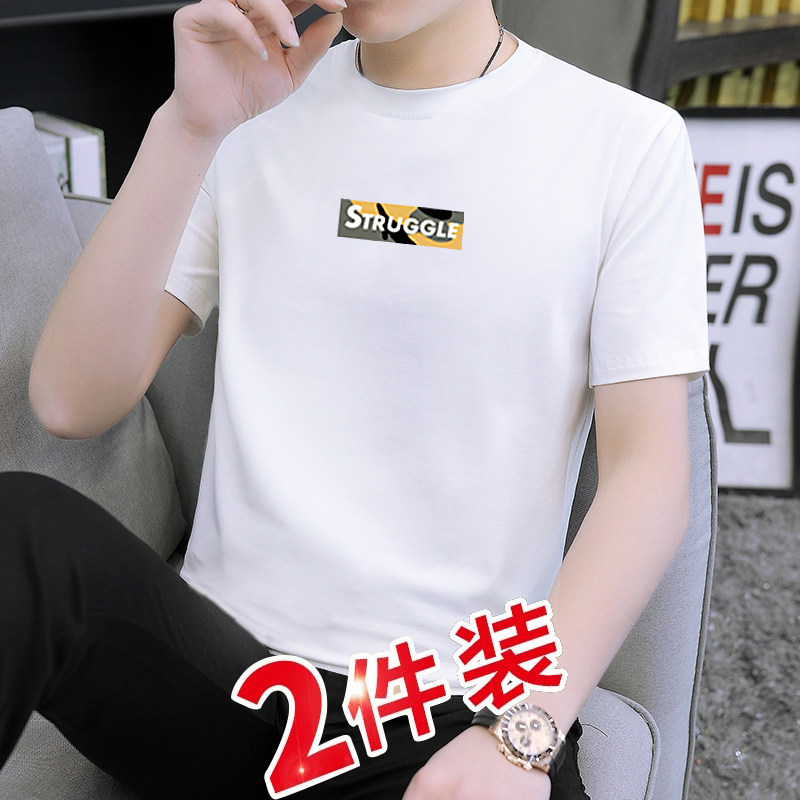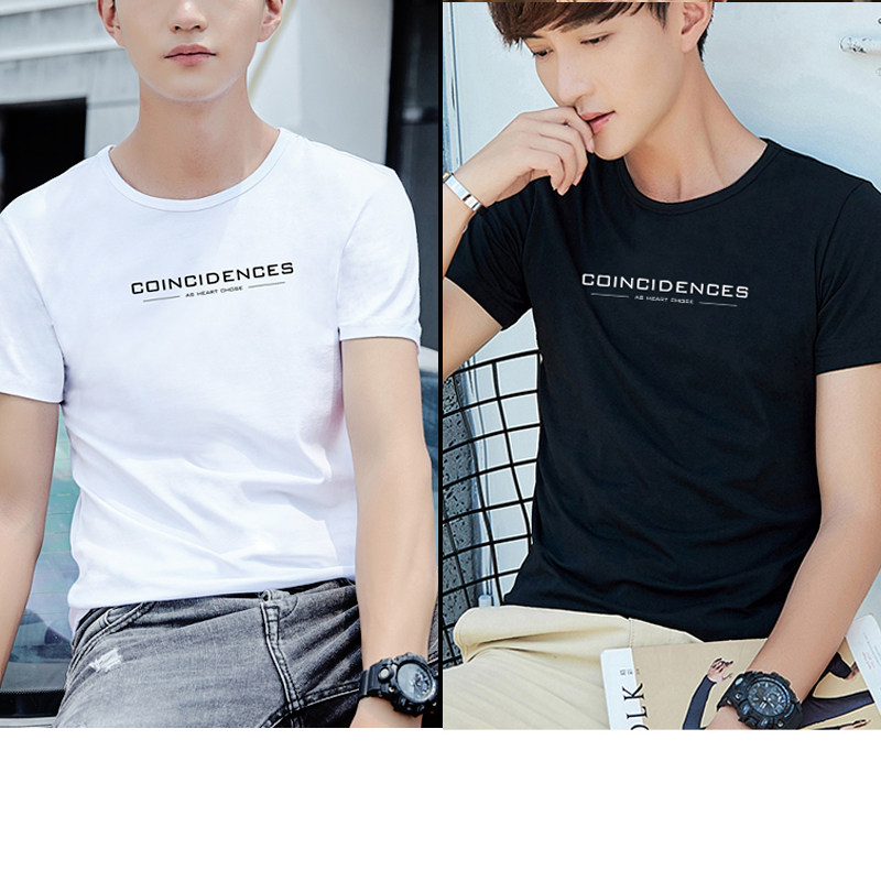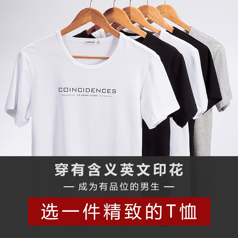 White round collar printed short sleeve T-shirt male letter English simplified for simple little Qingxin Summer T-shirt
