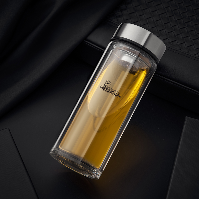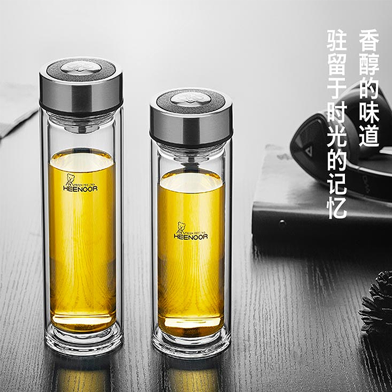 Shinoxino double layer insulation business water glass with lid portable men upscale heat resistant glass office glass goblet