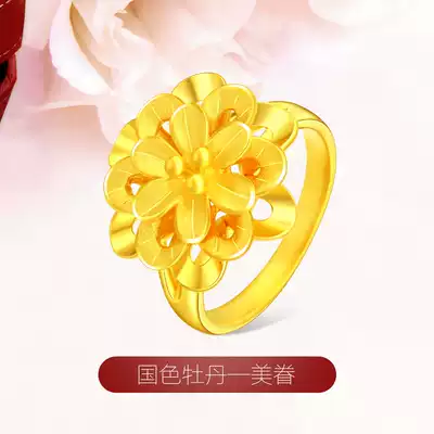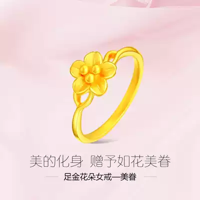 Gold ring Female 3D hard gold 999 pure gold ring Bead flower ring Pure gold ring Wedding gold ring Jewelry Jewelry