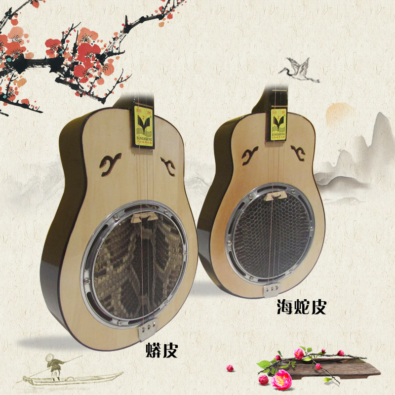 Wave guitar three-string Qinqin instrument Python skin Qinqin waist plucked piece ancient instrument