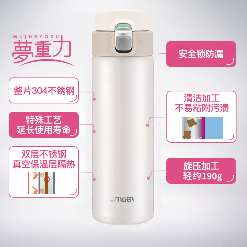 tiger tiger brand MMJ-A48C Portable men's and women's one-handed bullet cover 304 stainless steel thermos cup water cup 480ML