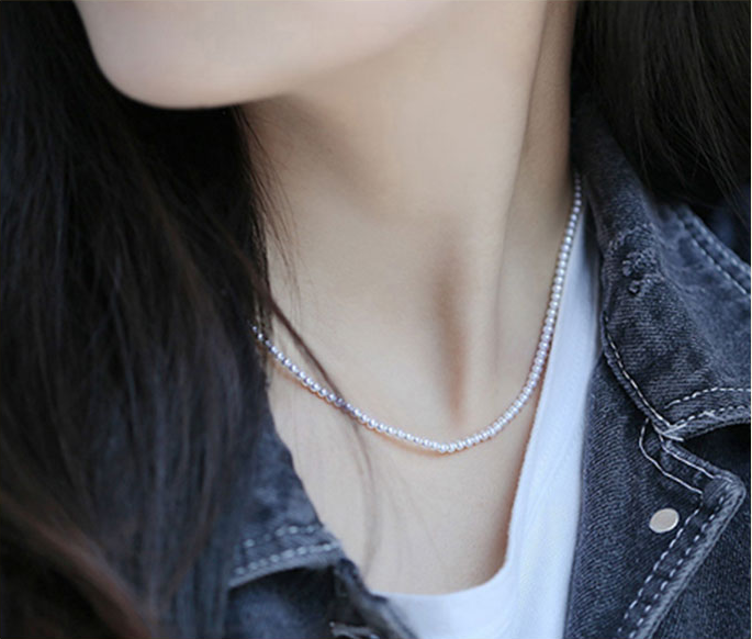 Counter Super small 1-2-3-4mm strong light immaculate round natural pearl necklace can be worn in multiple layers
