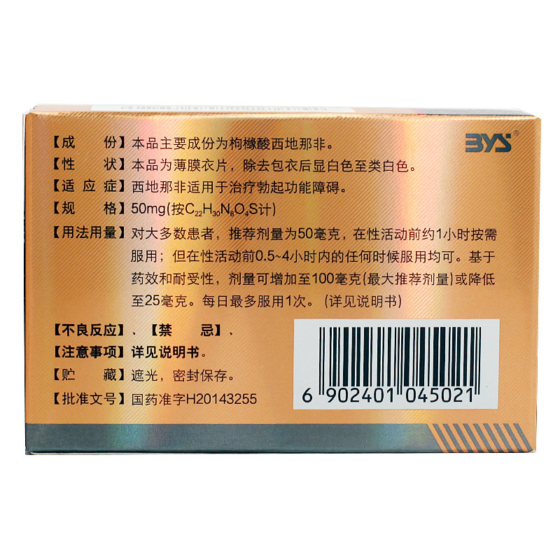 Sildenafil Citrate Tablets 50mg * 8 tablets for Erectile dysfunction Baiyunshan domestic Viagra