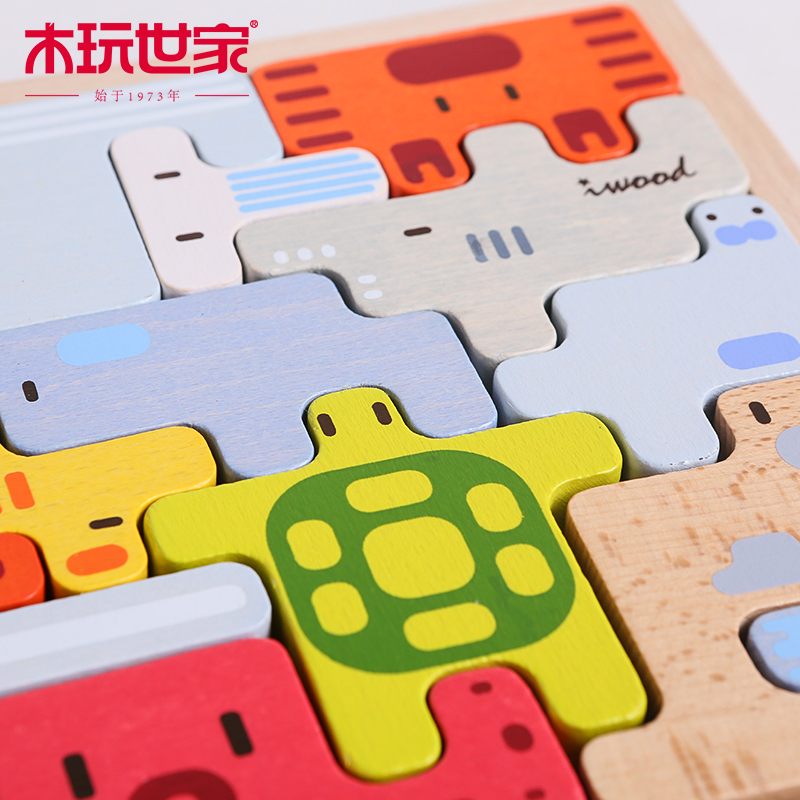 Wooden Mountain Love Mumme Little Animal Theme Building Baby Yi Yi Premature Teaching Wooden Building Toy Gift