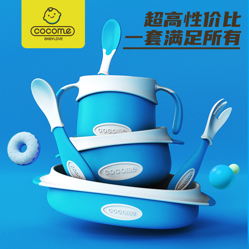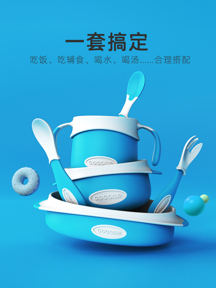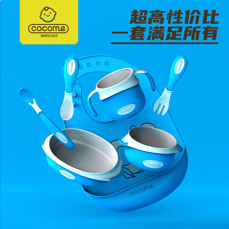 Sky Blue Blue 3 pieces (parent-child bowls parent-child cup) Tianqing Blue 6 pieces (parent-child bowls parent-child tray parent-child cup fork length spoon) Tianqing Blue 7 pieces (eating around for a family)