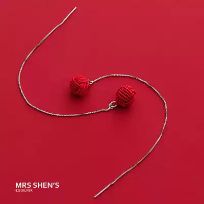 Mrs. Shen S925 sterling silver accessories red rope knitting New year earrings ear refining female temperament Korean long earrings
