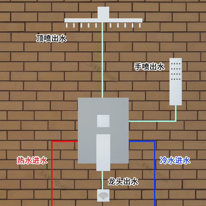 AVIS embedded wall shower All copper concealed embedded box mixing valve Square shower switch body accessories