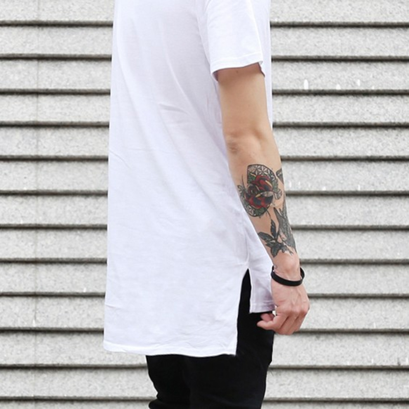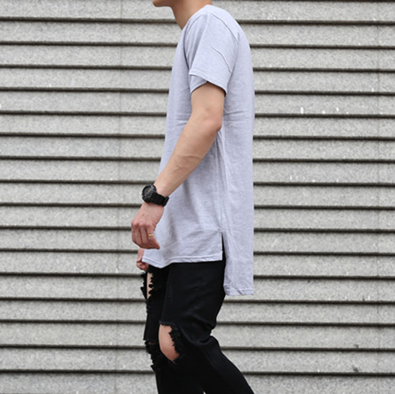 ins and USA High Street KANYE beating undershirt in front short rear long open fork short sleeve T-shirt Bieber male and female 4 seasons pure cotton TEE