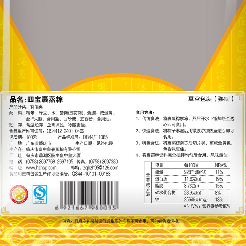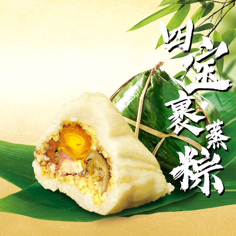 Zhaoqing imperial China's imperial four treasures wrapped in steamed rice dumplings with egg yolk burning with golden ham meat rice dumplings 550g handmade rice dumplings Guangdong old character number
