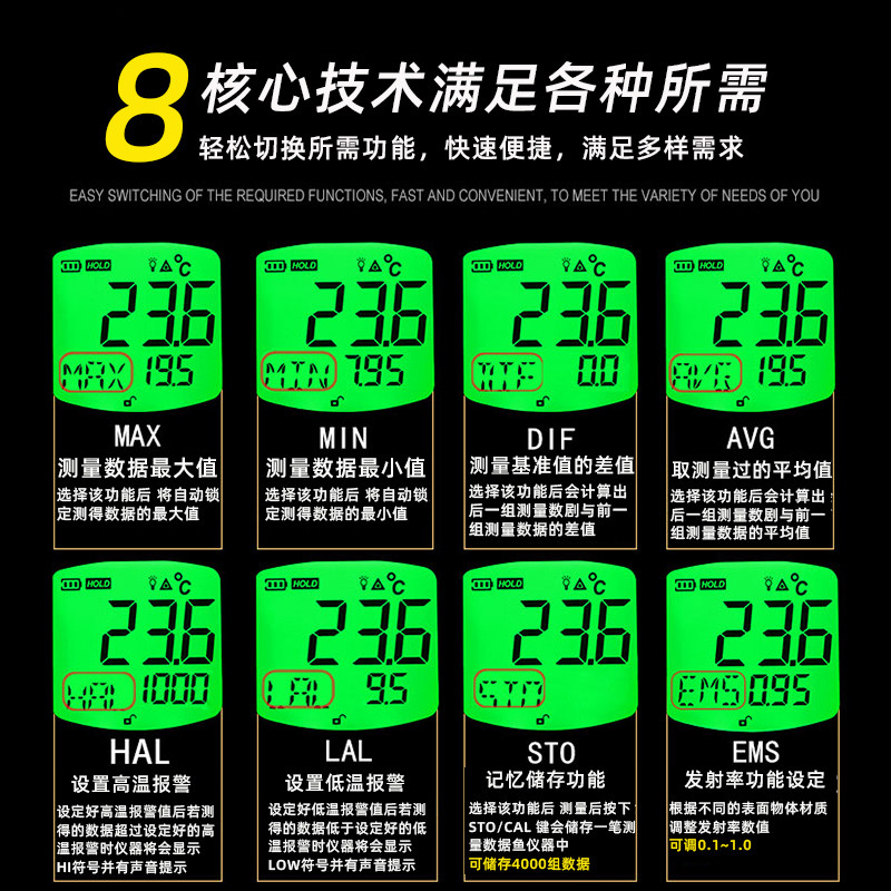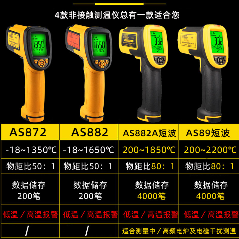 -18 ℃~ 1350 ℃ (industrial high temperature standard) AS872 -18 ℃~1350 ℃ (industrial high temperature type with charging battery)AS872 -18 ℃~16
