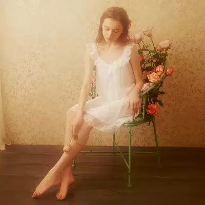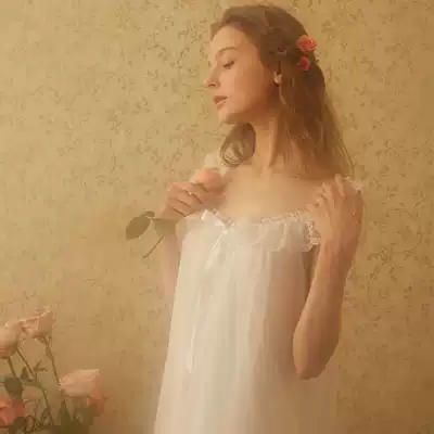 RoseTree Princess Nightdress Women Summer Ice Silk Palace Pajamas Sweet Sexy Lace Strap Short Sleeve Home Clothes