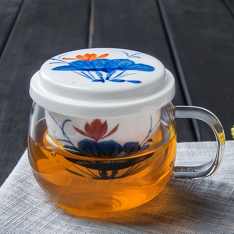 Beauty Naughty Ceramic Filter Liner Glass Flower Tea Cup Thickened Office Tea Water Separation Water Tea Hand-painted Cups