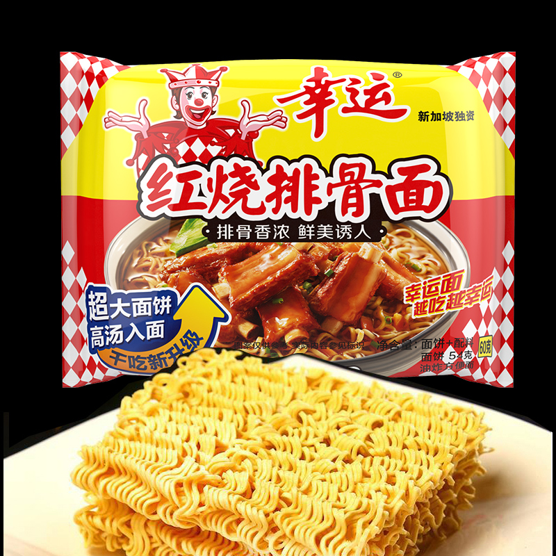 Lucky instant noodles whole box wholesale braised ribs noodles bagged Anhui instant noodles dry eat crispy noodles snacks