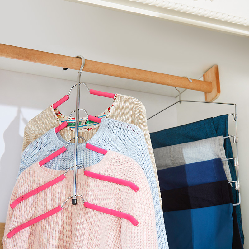 Stainless multi-layer anti-skid steel coat rack pants set hostel household multi-function clothes towels hanging clothes