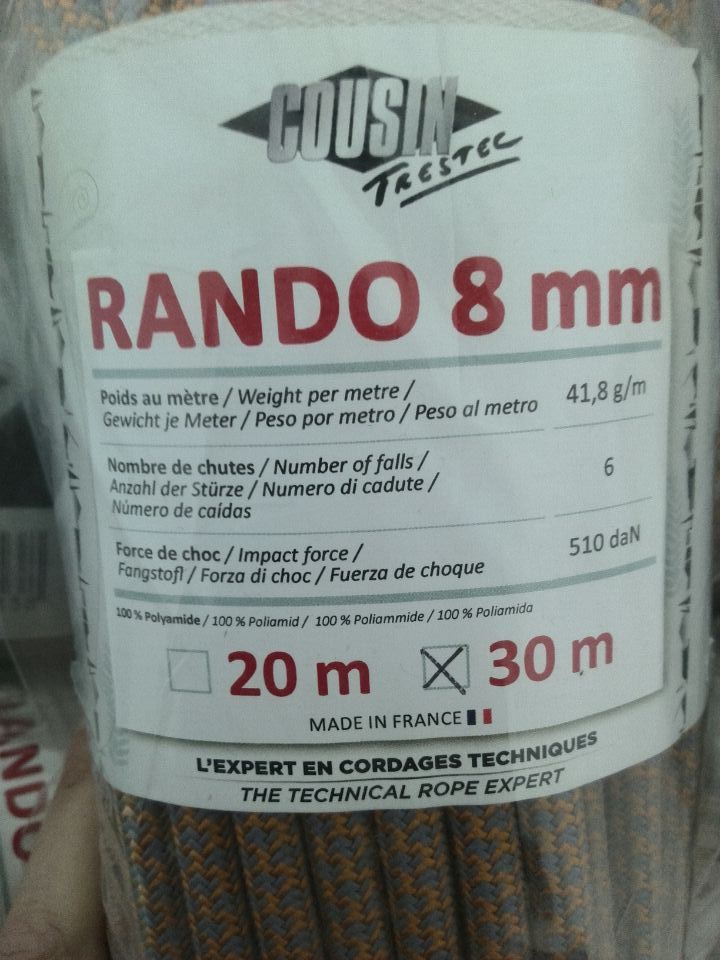 French import COUSIN rope expert rock climbing rope mountaineering outdoor ice climbing hiking RANDO 8MM
