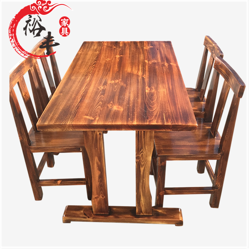 Decarbonated solid wood string Sesame Hotel Dining Table Chairs Noodle Restaurants Table And Chairs Hotpot Table Rice Flour Shop Table And Chairs Canteen Dining Table And Chairs