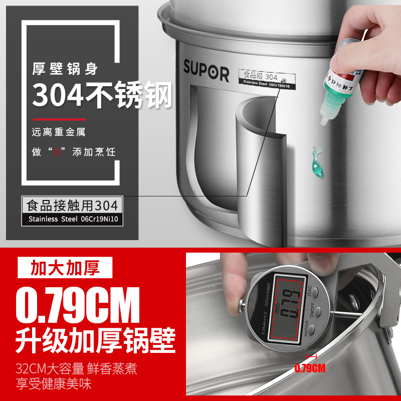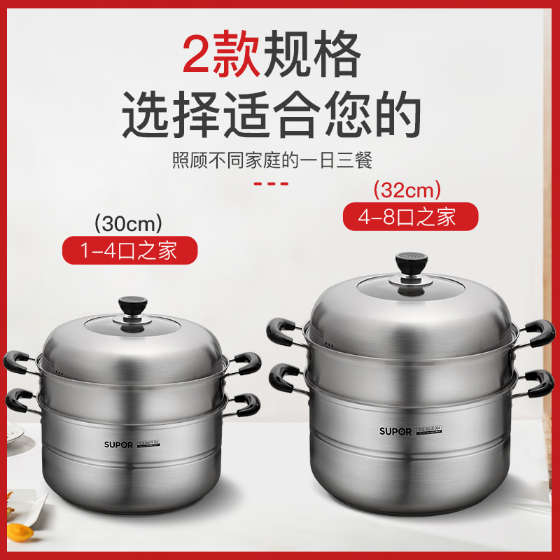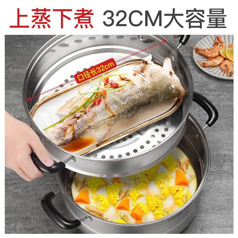 Supor steamer 304 stainless steel thickened large capacity 32 household 2-layer induction cooker gas stove with double steamer