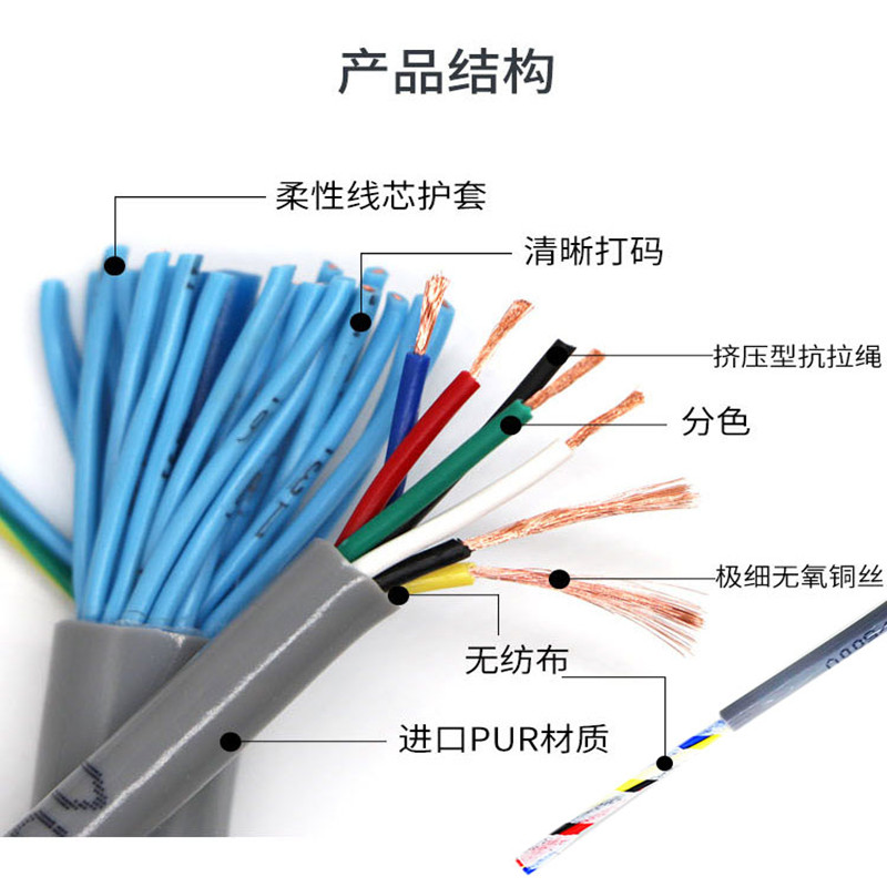 Flexible drag chain cable TRVV0 3 0 5 0 75 1 1 5 2 5 square copper core soft control wire resistant to bending