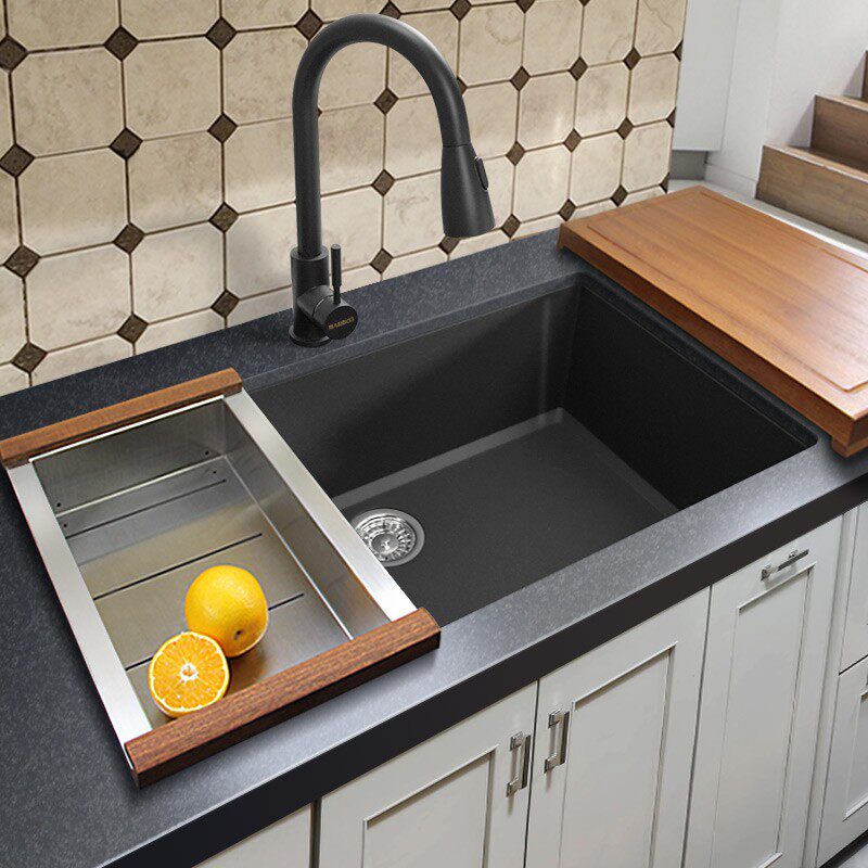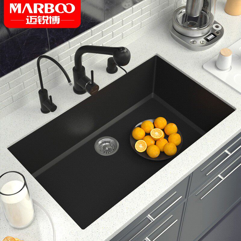Maribo quartz stone sink black granite large single tank kitchen sink counter basin sink 930