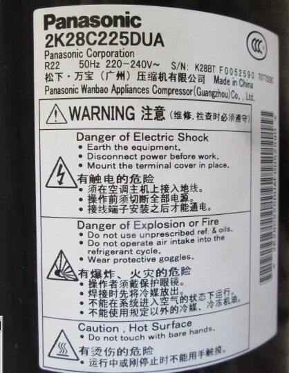 Original installation Panasonic 2K23S225BUA 2K23S225BUA 2K25S225BUA 2K28C225DUA 2K28C225DUA 1 5P Air conditioning compressor