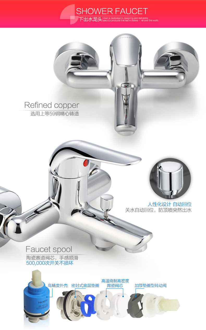 Moen shower shower set Hot and cold copper shower faucet set Mixing valve Bath shower 12333EC