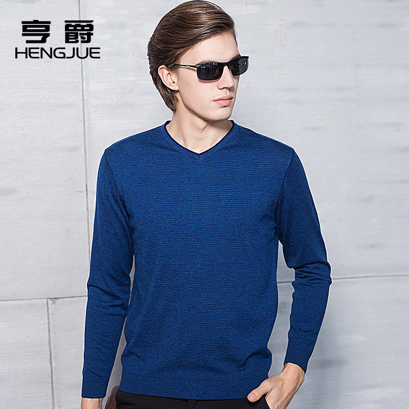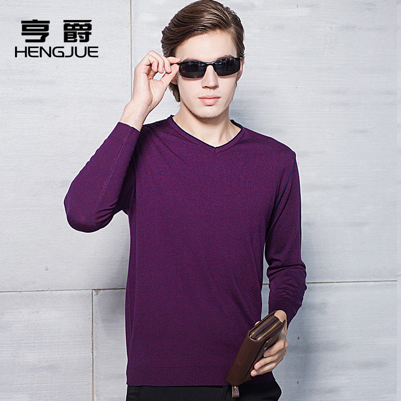 Henchon men's long sleeve T-shirt V collar youth Korean version Body Fashion Hit Bottom Body Shirt Fall Clothes Thin trends
