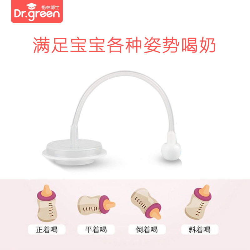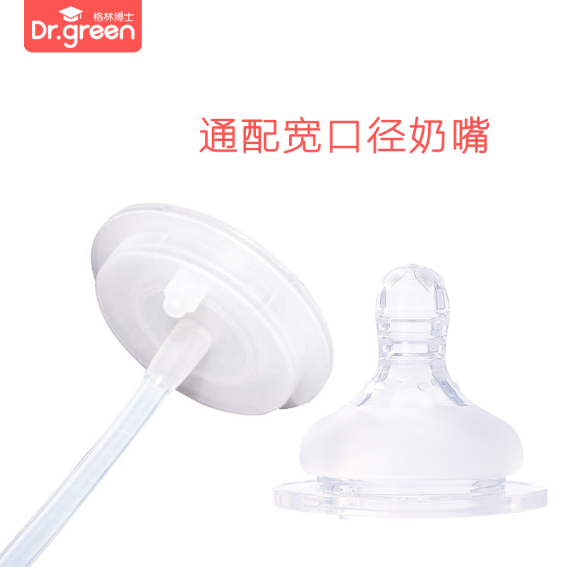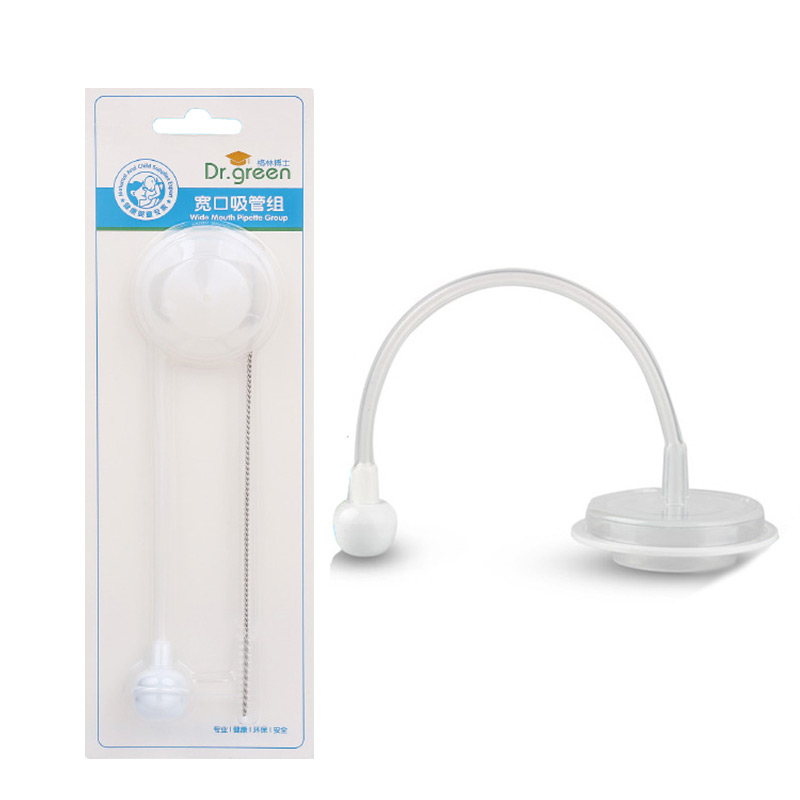 Dr. Green original fitted wide mouth diameter feeding bottle straw silicone straw straw with washing brush Automatic feeding bottle straw