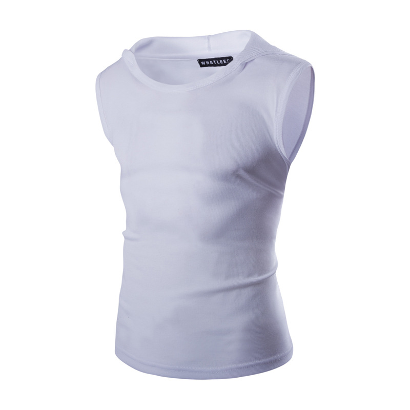 Sleeveless T-shirt men's pure cotton youth summer hooded fitness sweatshirt running sleeveless top men's summer bottoming shirt