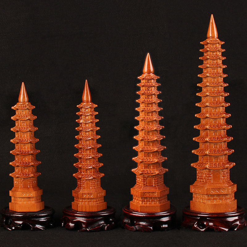 Peach wood Wenchang Pagoda ornament 7799 eleven eleven thirteen thirteen 13 floors of original color wood carving solid wood Wenchang pagoda handicrafts