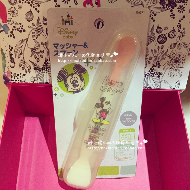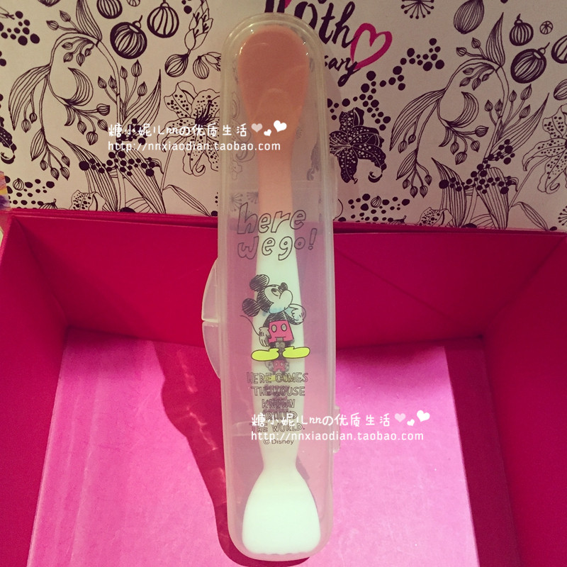 Japan Skater Portable Multifunction Deputy Food Grinding Vice Food Tablespoon With Box Containing Double Head Spoon Mickey Soft Tablespoon