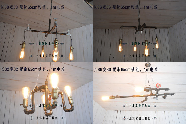 loft American countryside Industrial retro style Water pipes Bar KTV Cafe Decoration Edison Iron art chandelier