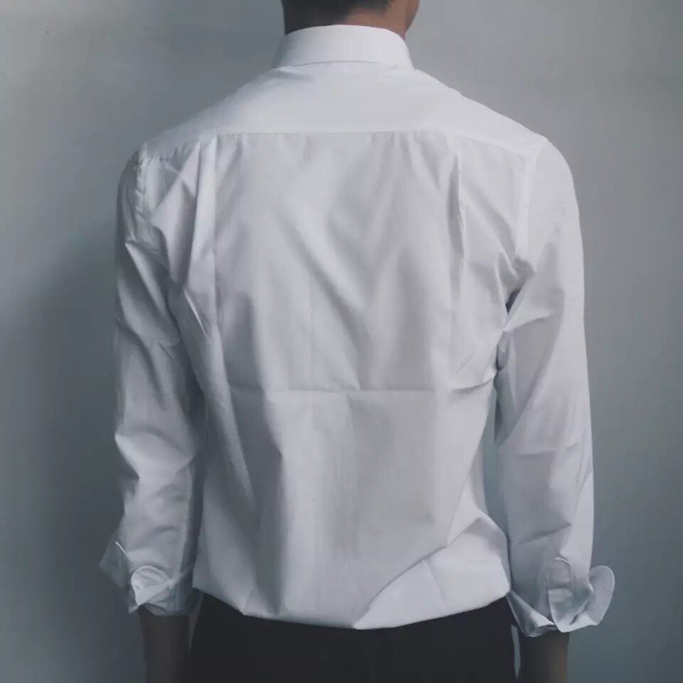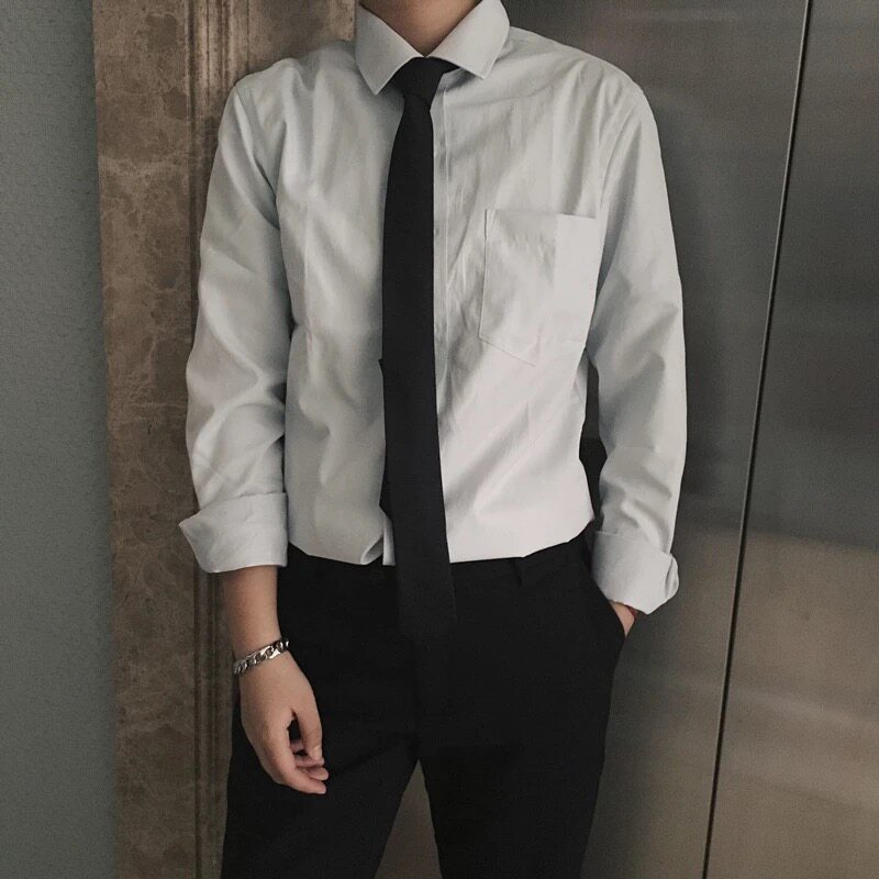 cuibuju Korean version simple casual pure white base shirt men's business occupation pure cotton long-sleeved shirt men's formal