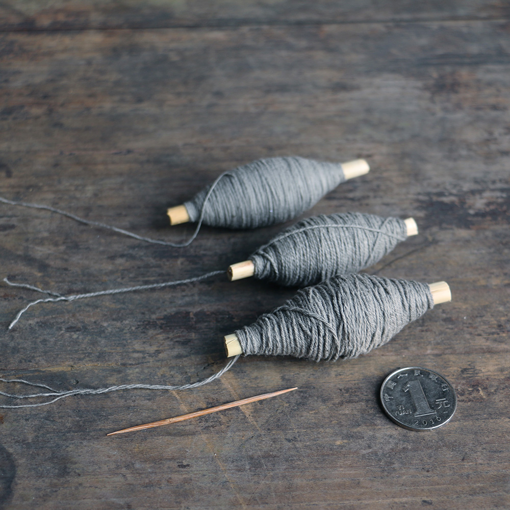Yishan people traditional hand-twisted pure cotton handmade cotton thread thorn thread Hand-stitched hand chain woven thread Grass dyed gray axis
