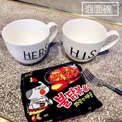 Super beautiful super simple export white bone china Big Bowl Cup big soup cup hisher couple cup instant noodles Big Cup