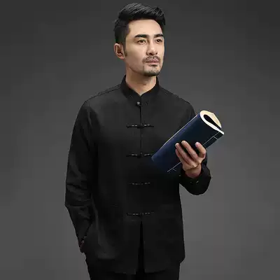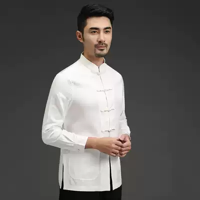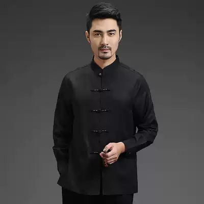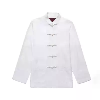 Tang suit male middle-aged and elderly long-sleeved summer shirt Chinese stand collar buckle embroidered top Chinese style casual tunic suit