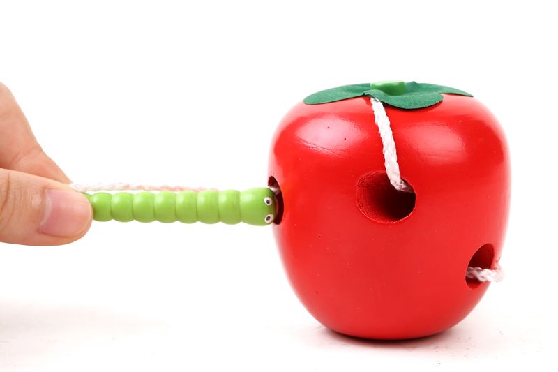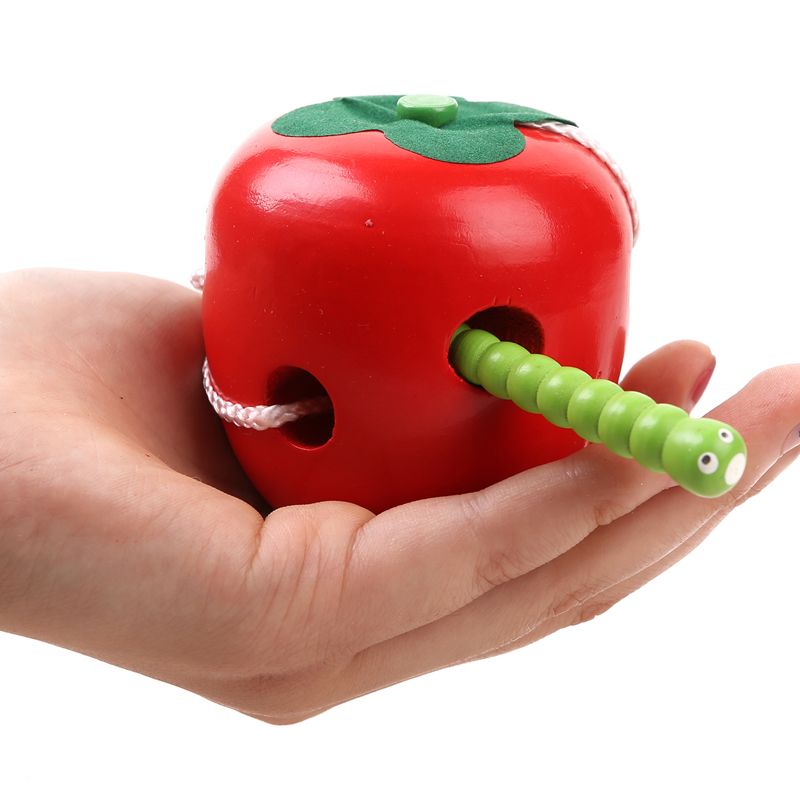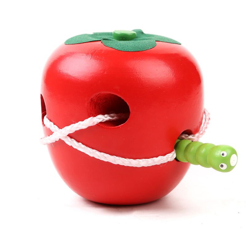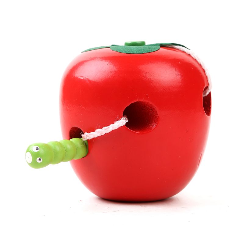 Wooden hooded classic teaching aids for eating fruits early to teach threading toys Mao caterpillars eat apple-parenting puzzle