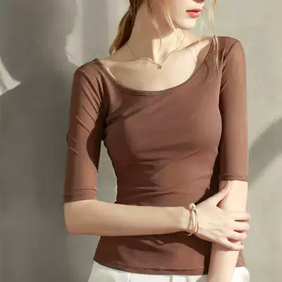 White Wine red Brown Black Gray Dark blue Apricot Dark green Caramel round neck mid-sleeve Dark coffee orange Big cherry red lotus root Pink