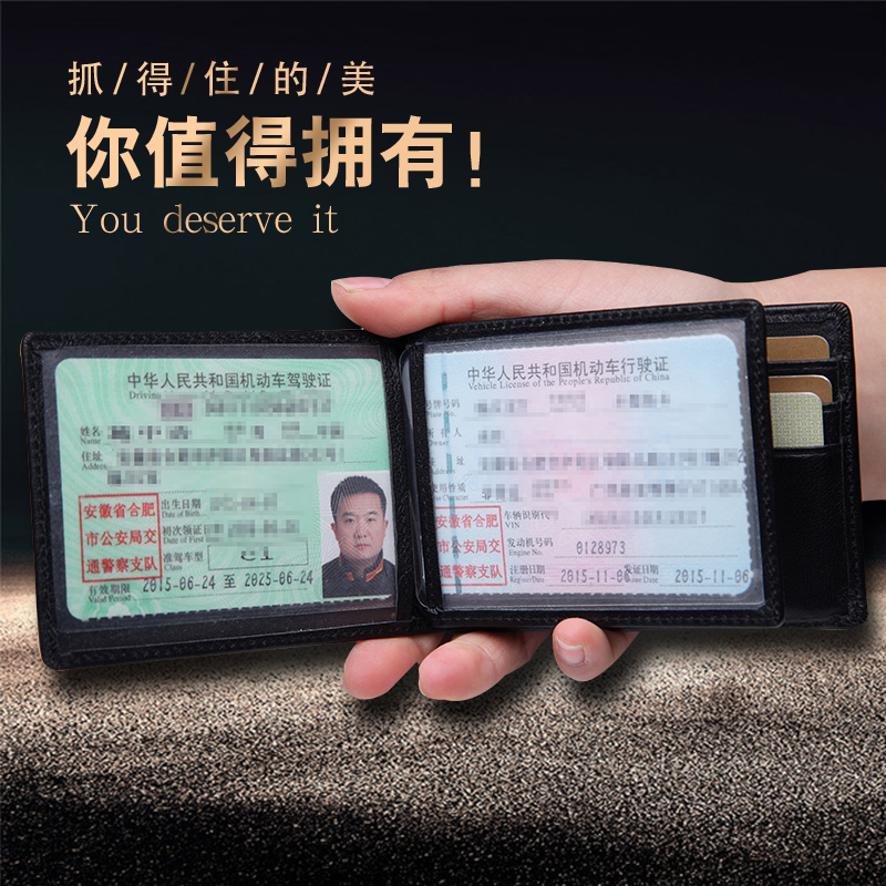 Driving License Real Leather Jacket Men's License Ben Personality Lady Motor Vehicle Walking License Document Bag Multifunction Two-in-one