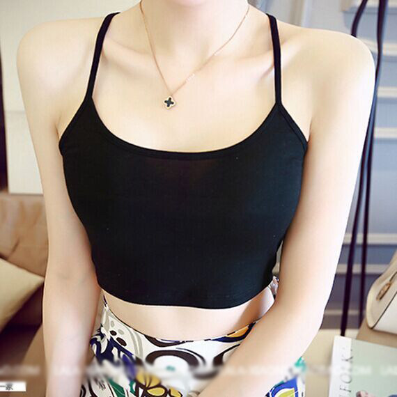 Half-cut sports slim-fit small inner bandeau cotton vest base shirt sexy umbilical short y suspender women black