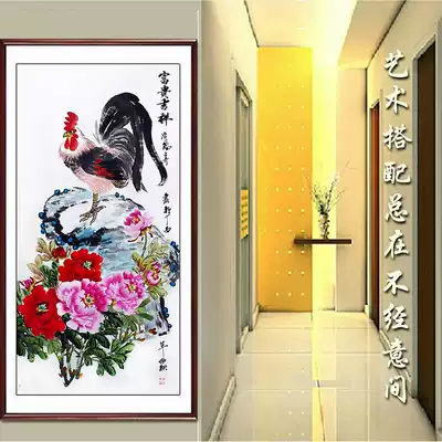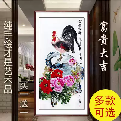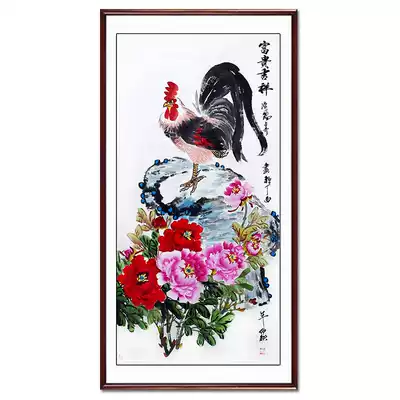 Chinese painting peony painting porch bedroom living room decoration characters hanging painting Luoyang flowers and birds hand-painted original original four feet Vertical