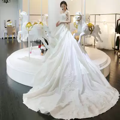 Satin heavy handmade luxury big tail wedding dress 2021 new bandeau custom palace retro thin princess