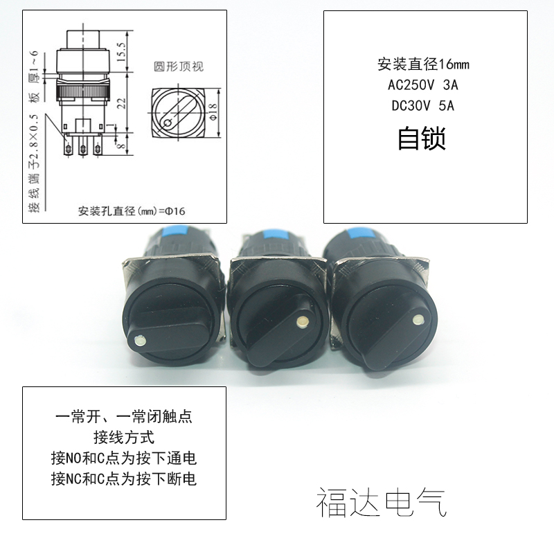 Two-stage select switch LA16-Y-11X2 LA16-Y-22X3 self-lock knob switch 16mm