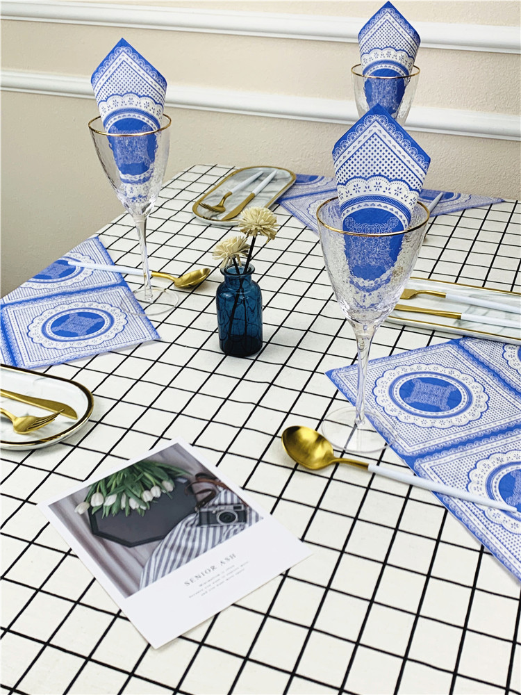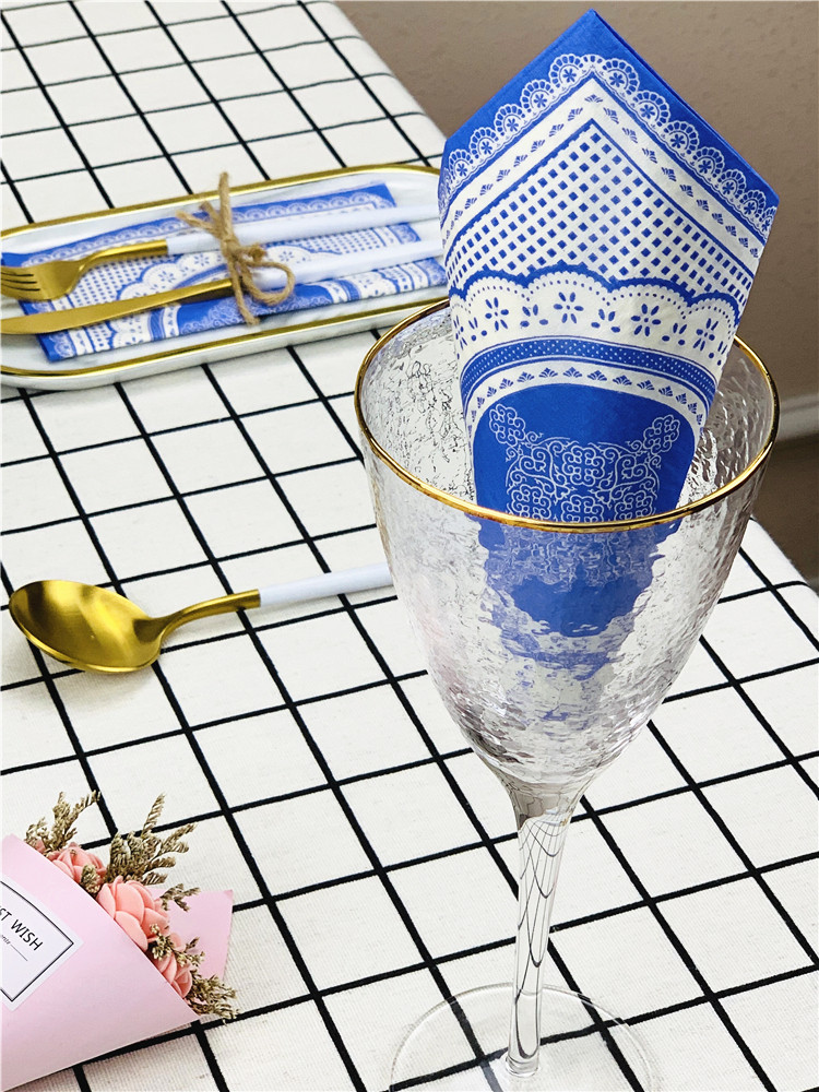 Printed paper napkins, colored napkins, wine glass, flower arrangement paper, hotel table decoration, placemats, blue patterns, 50 pieces per box
