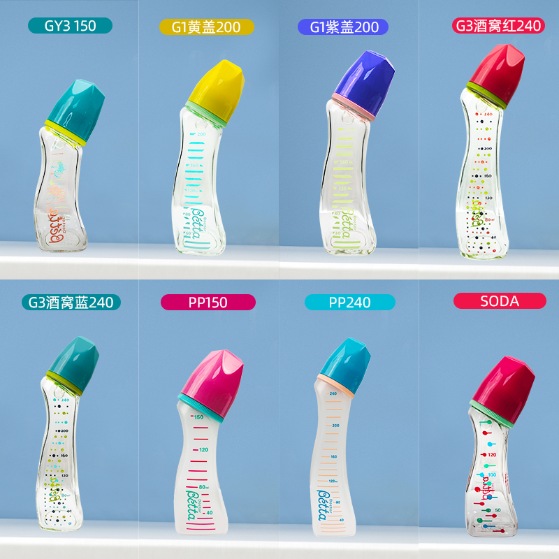 Japan Betta Beetto glass bottle imported anti-flatulent gas choked milk baby baby bottle diamond series