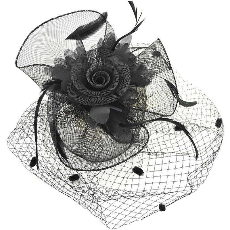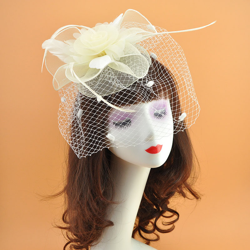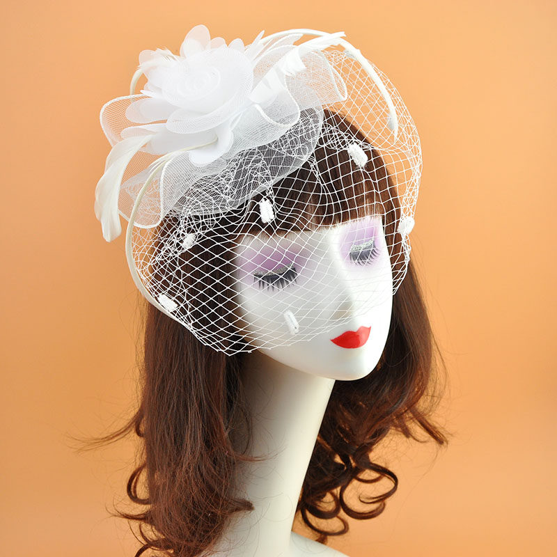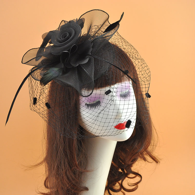 Bridal hair ornament European and American vintage veil hair ornament mesh feather head flower top hat hair clip black and white hair clip