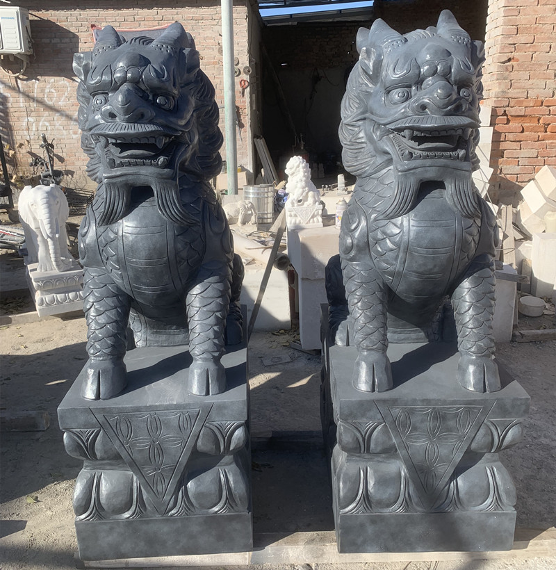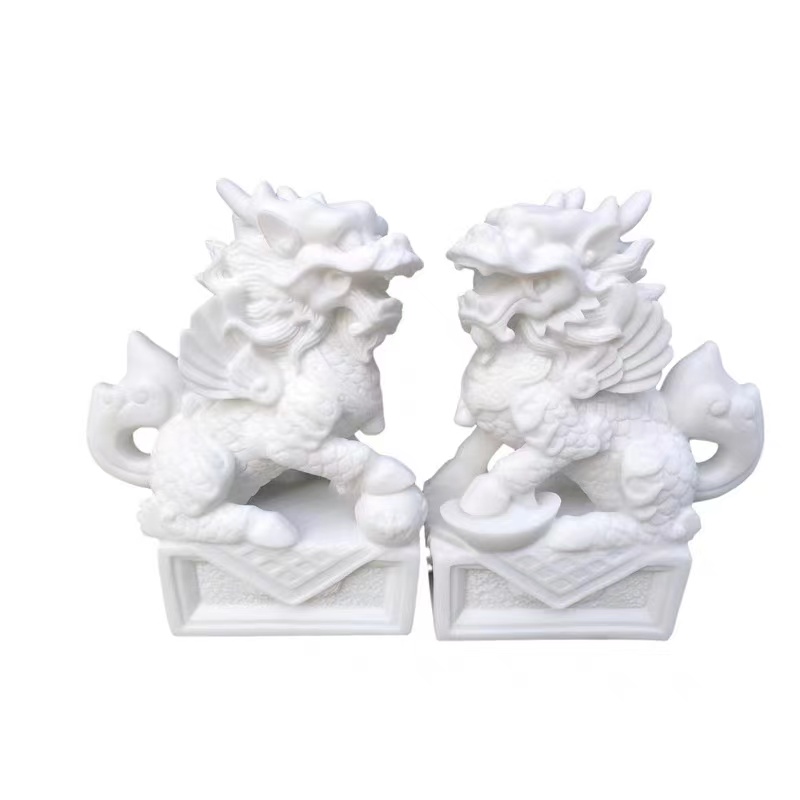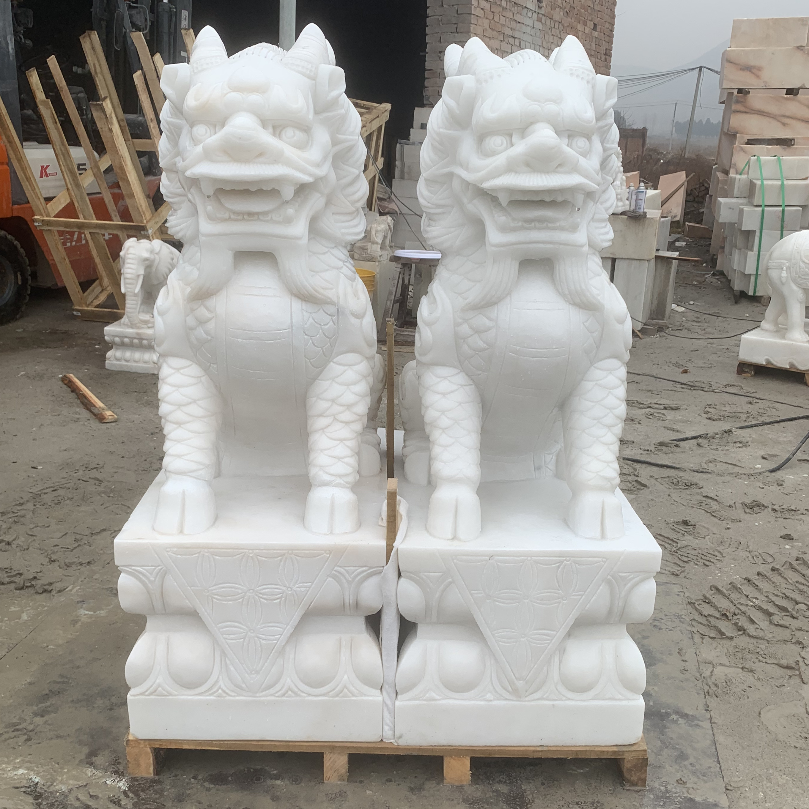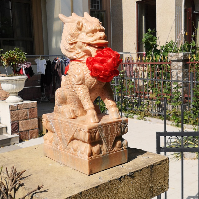 A pair of bluestone unicorns, a pair of decorations, doorkeepers, home hotel courtyard gates, lucky evening glow, red and white jade stone carving unicorns