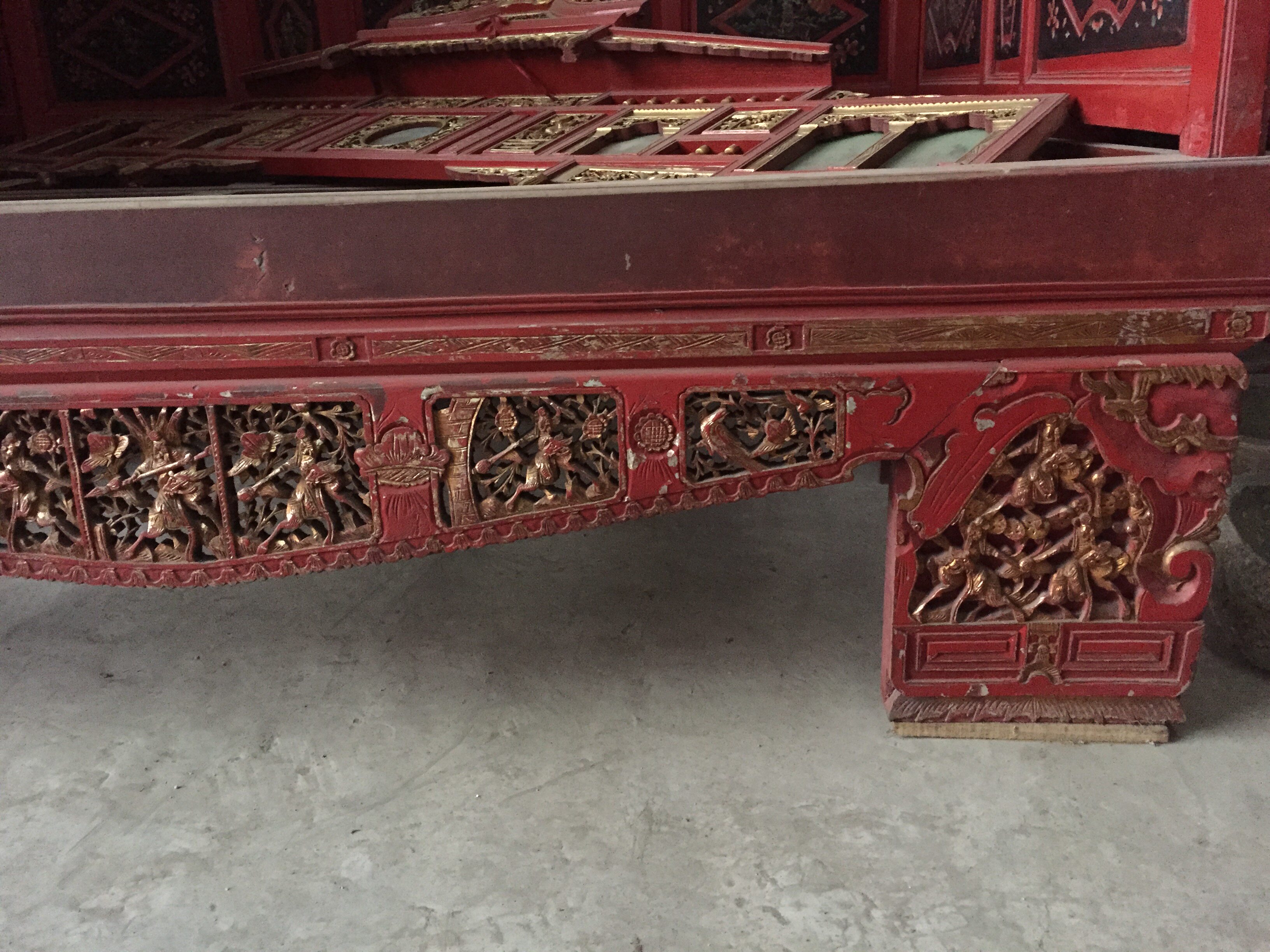 Antique Vintage Furniture Fine Wood Sculpture Sketching Gold Large Lacquer Sculpted Characters Flowers Birds of Republic Racks Bed one thousand Working Bed Lady Bed-Taobao